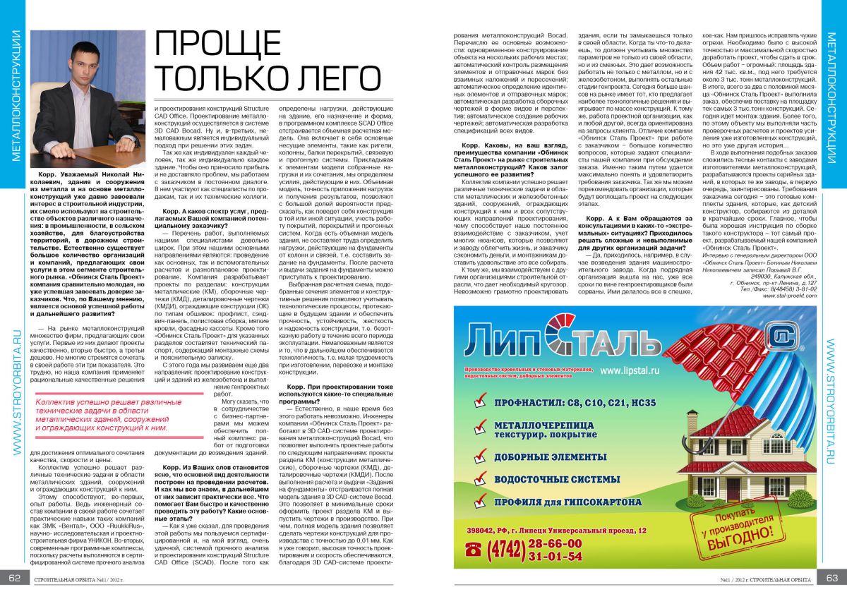 Публикация в журнале "Строительная Орбита". Выпуск №11, 2012 г.